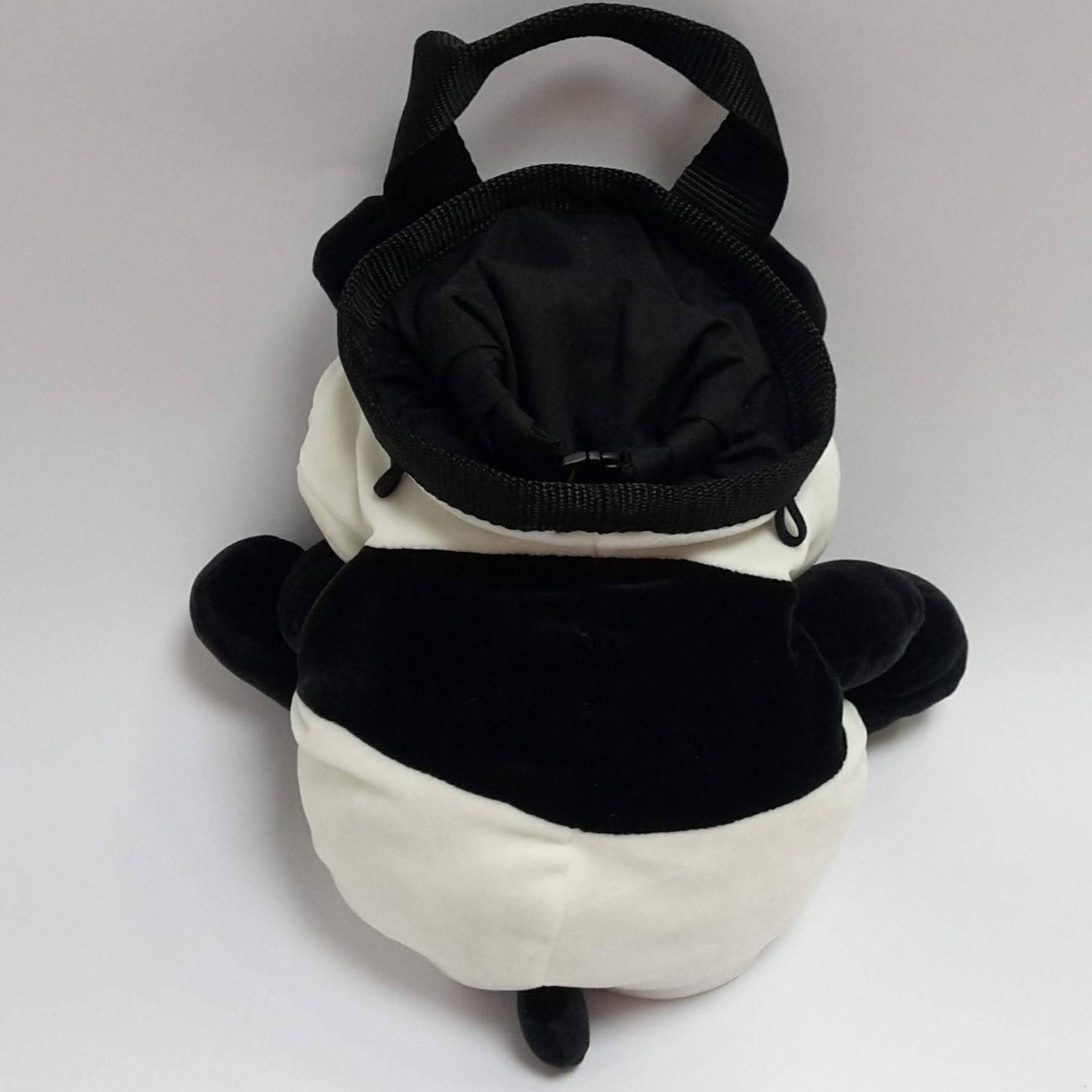 This super-cute Panda Chalk Bucket is made from a soft, cuddly plush toy. He has a polypropylene webbing rim and handle, polar fleece inner bag, elastic brush loops, and polyester fabric and webbing stuff sack style closure.